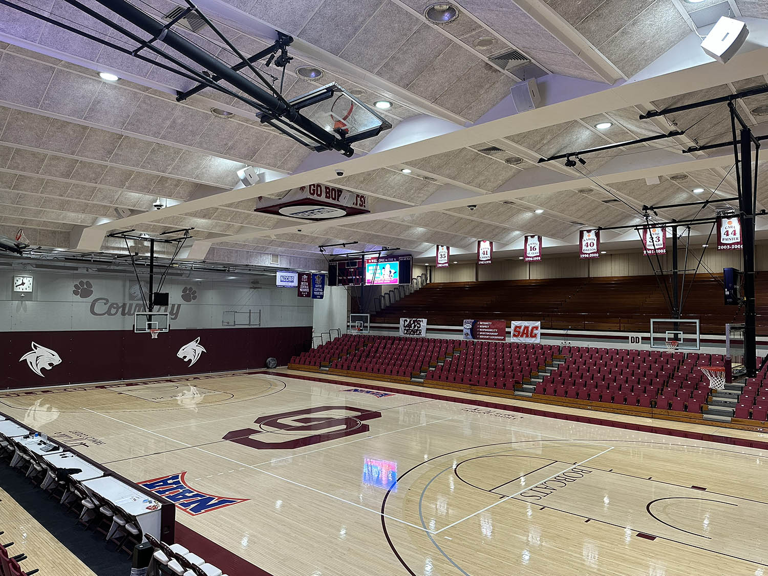 To replace an outdated sound system in a small college basketball arena with a modern, high-performance audio solution.