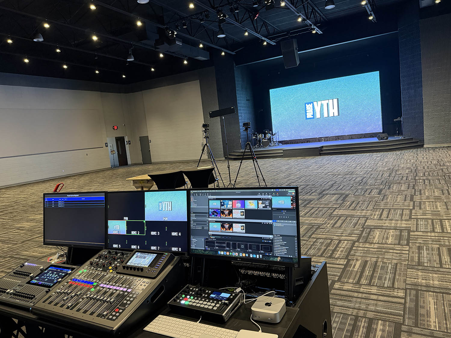 - The video wall was connected to multiple HDMI inputs, integrating with the church’s existing sound and lighting systems.