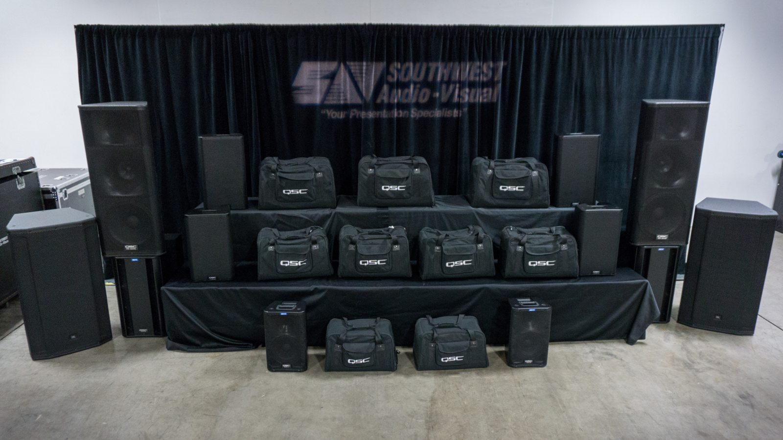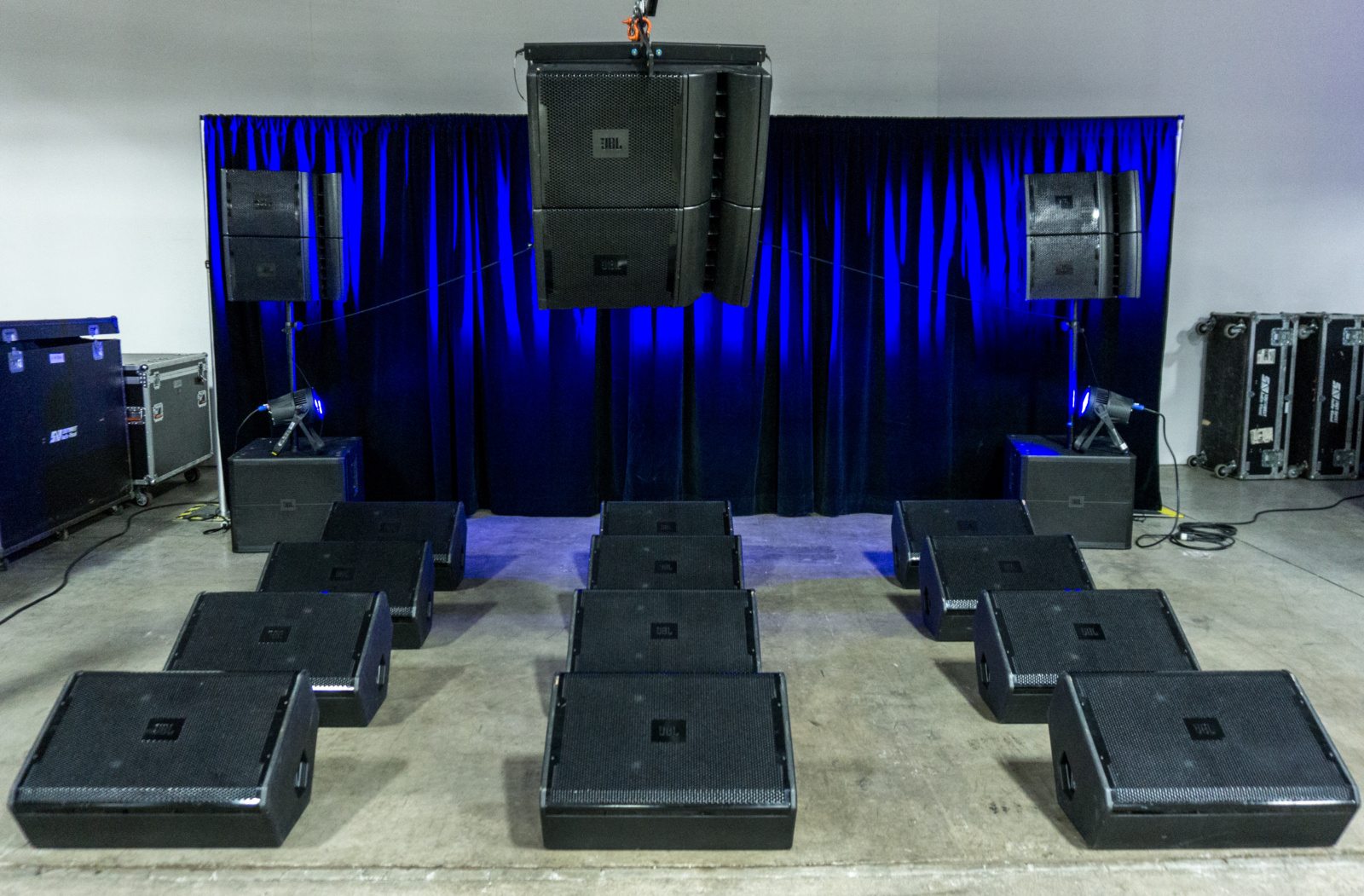 Our large venue systems work great for audiences of 200+ people. We can provide an extensive list of equipment for larger size events, and your best bet is to give us a call or send us an e-mail with your specific event needs.
