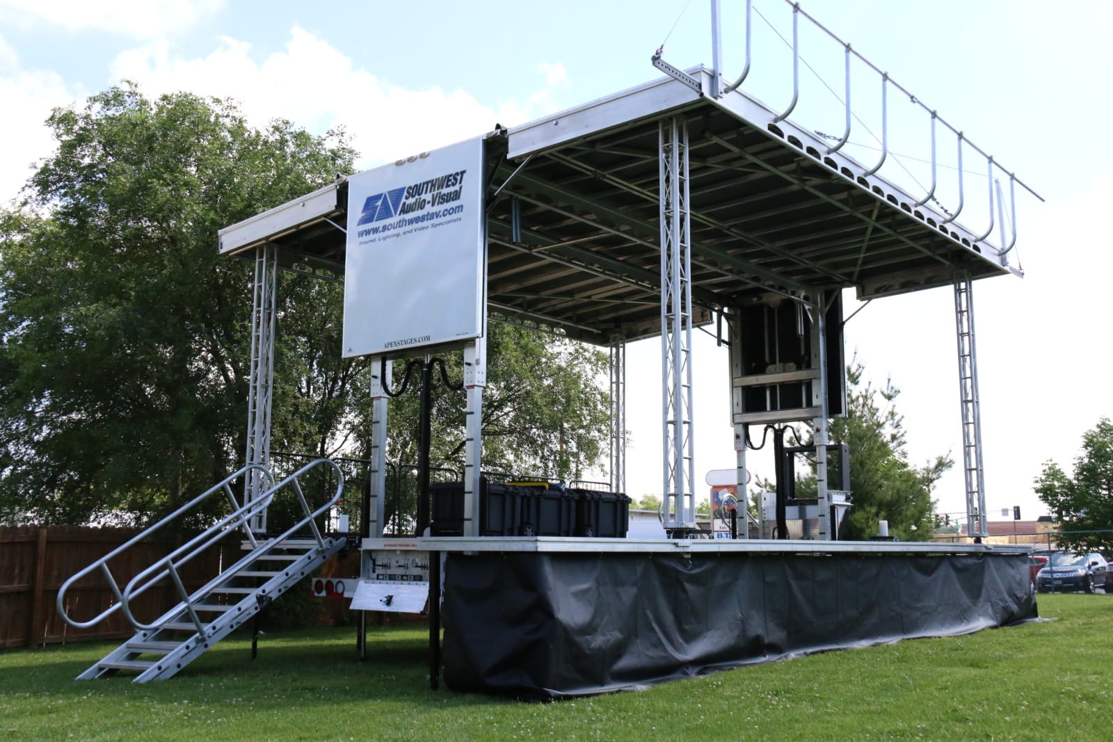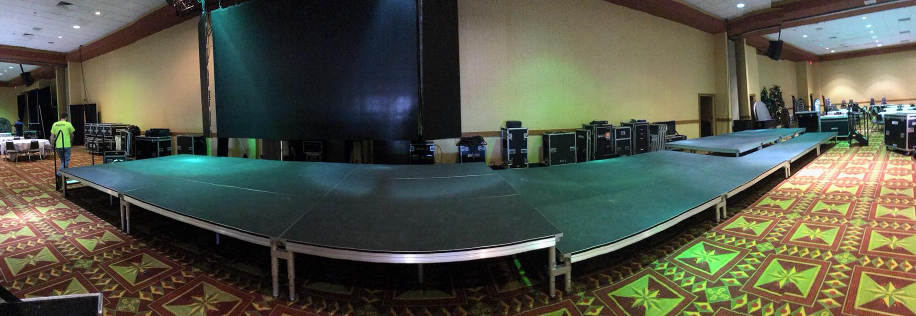 Designed for both indoor and outdoor applications, our staging equipment is professionally installed, leveled, and secured to ensure safety and stability. We offer stage skirting for a polished look, as well as optional steps, guardrails, ADA-compliant ramps, and custom finishes to meet accessibility and design requirements. When combined with professional lighting, sound, and video support, our stages and risers create a dynamic focal point that elevates the experience for presenters, performers, and audiences alike.
